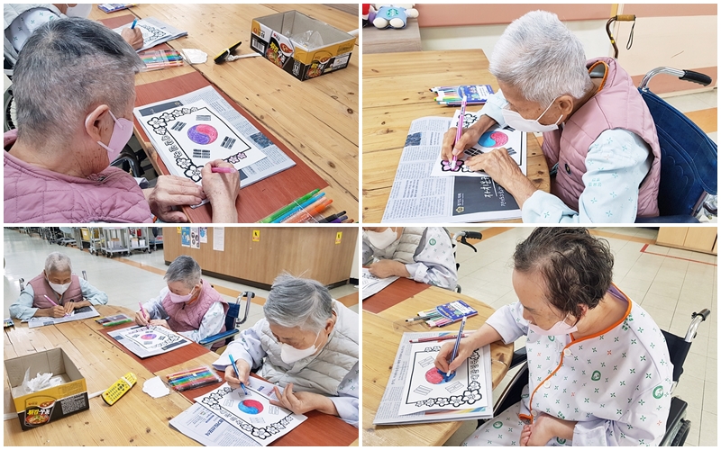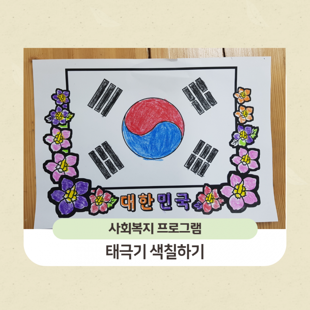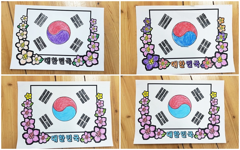 3월 2일에는 3.1절을 맞이하여 태극기를 색칠해보았습니다.