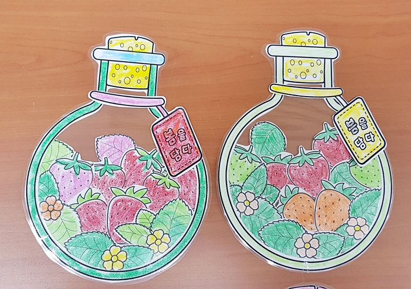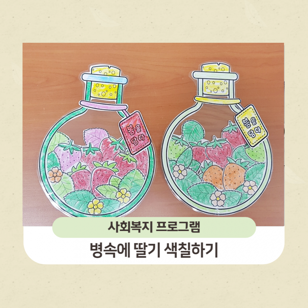사회복지 프로그램 시간으로 병속에 들어있는 딸기그림을 색칠해보았습니다.