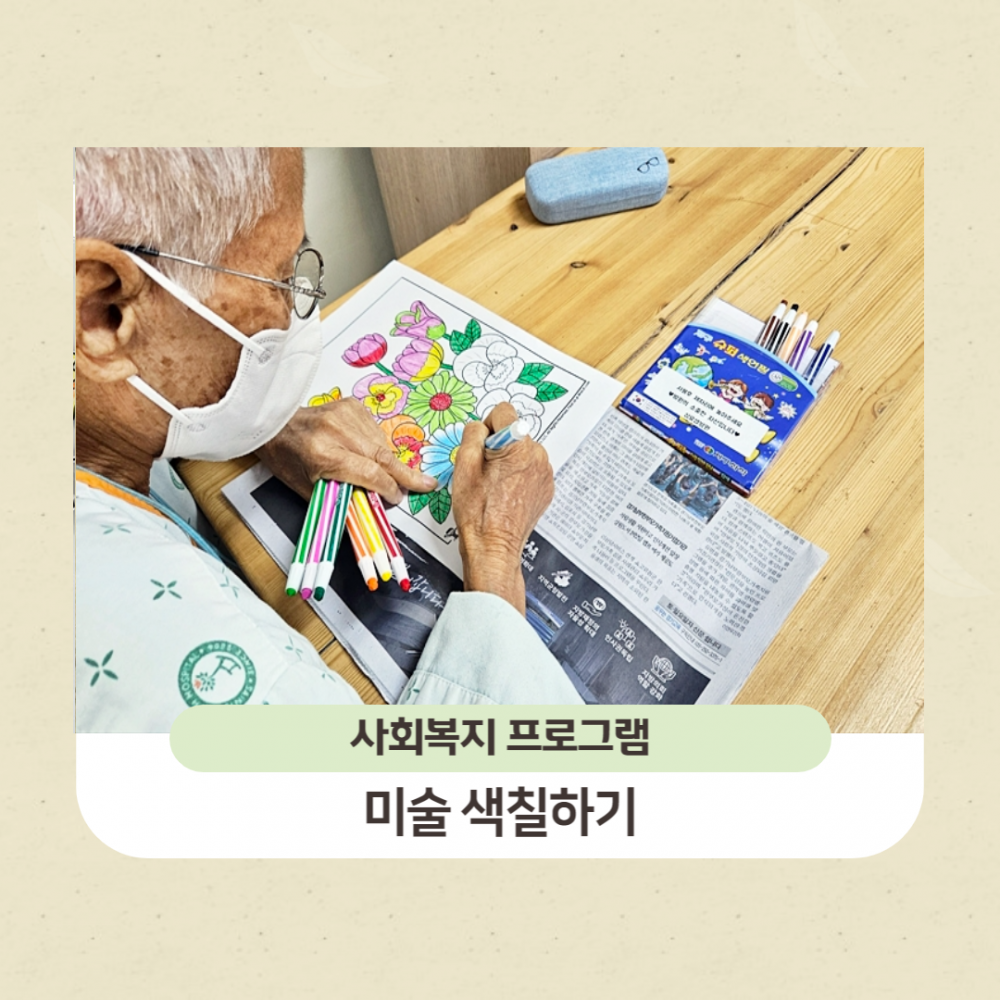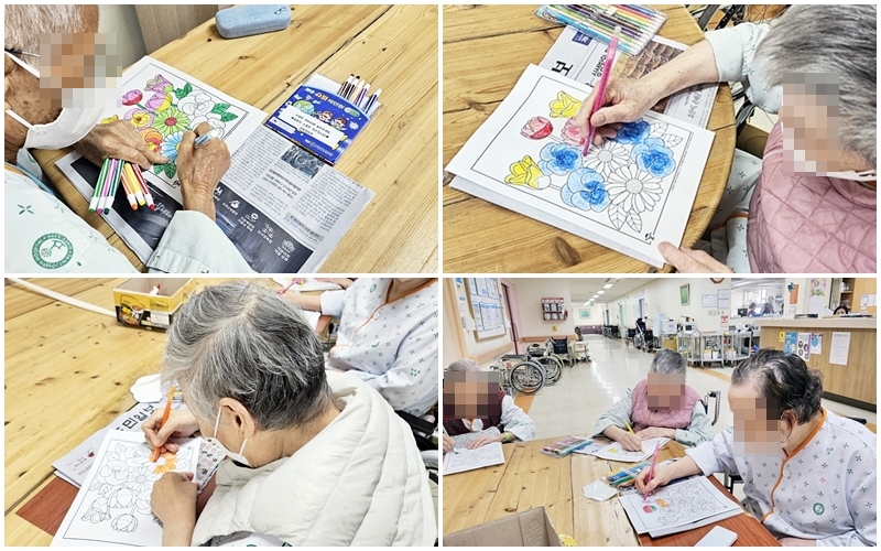 오늘은 어르신들과 함께 꽃 색칠을 해보았습니다.