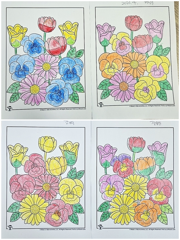 꽃색칠을 제일 좋아하는 어르신들께서는 다양한 색깔을 활용하여