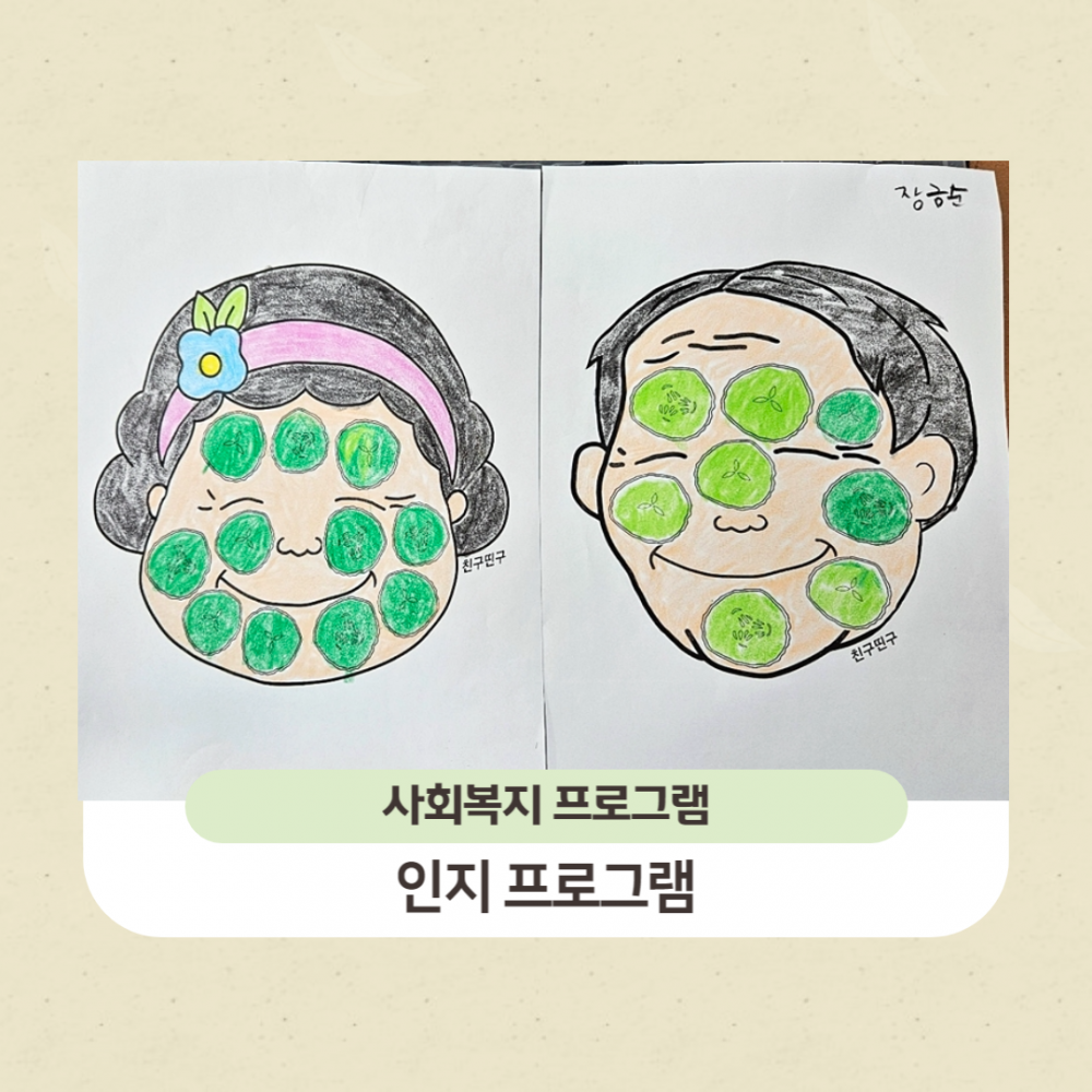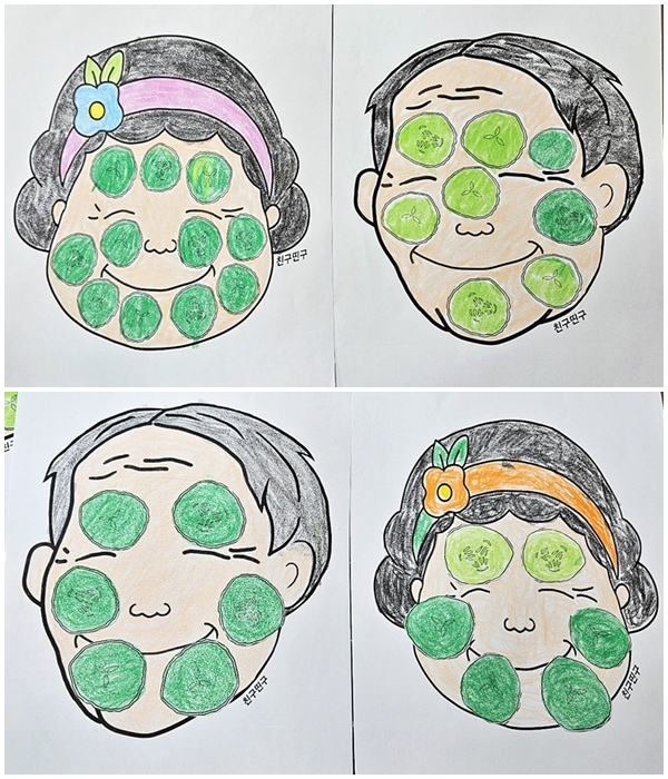 얼굴에 오이를 붙인 모습이 재미있으시다며 다들 즐거워하셨습니다.