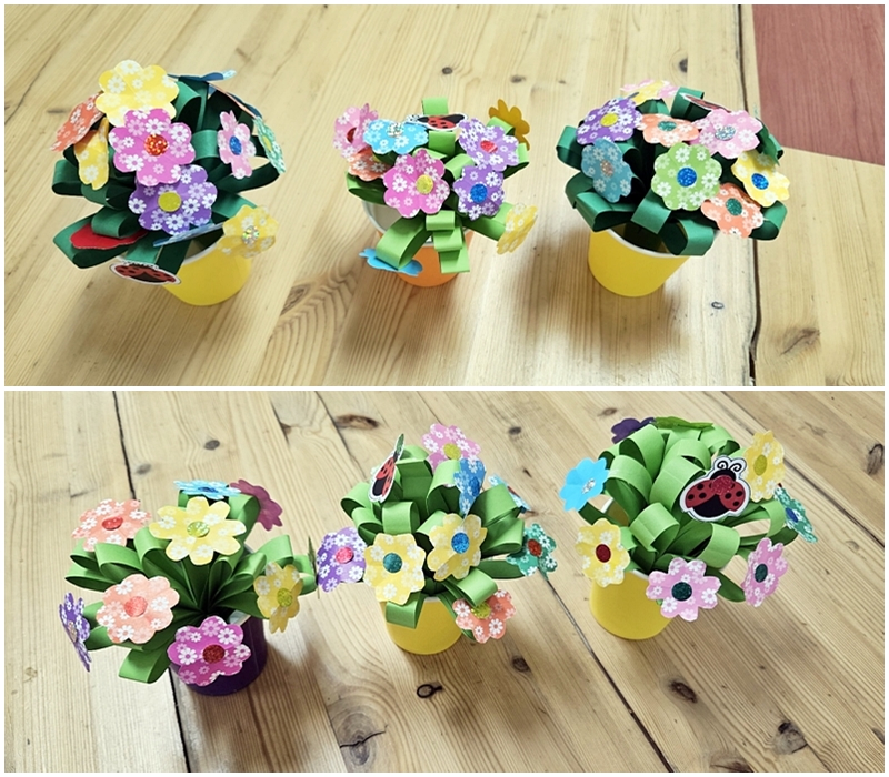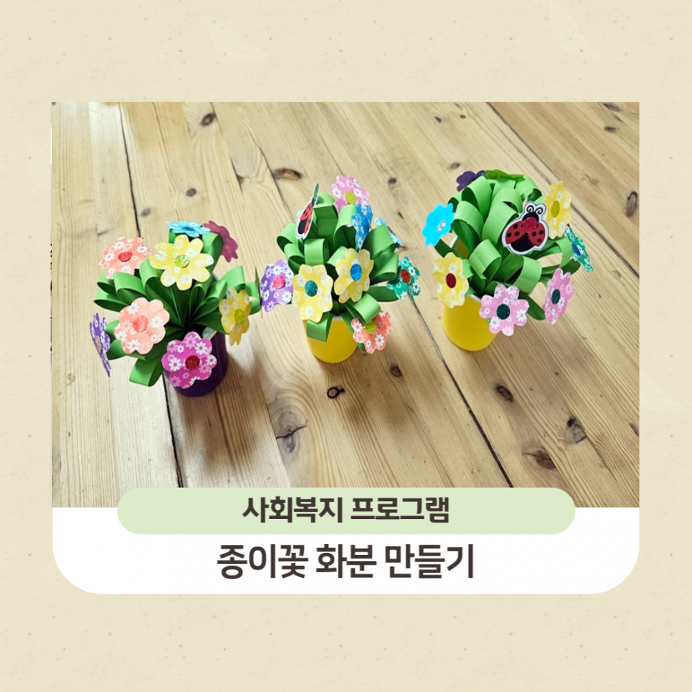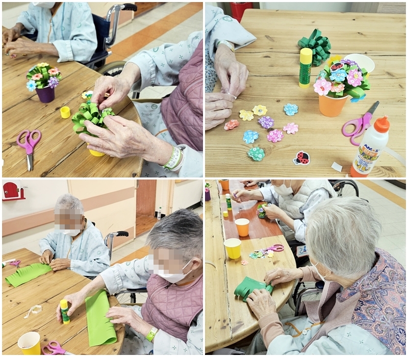 두분씩 나눠서 만드는 방법을 설명드렸으며, 설명에 따라서 종이꽃 화분을 완성하셨습니다.