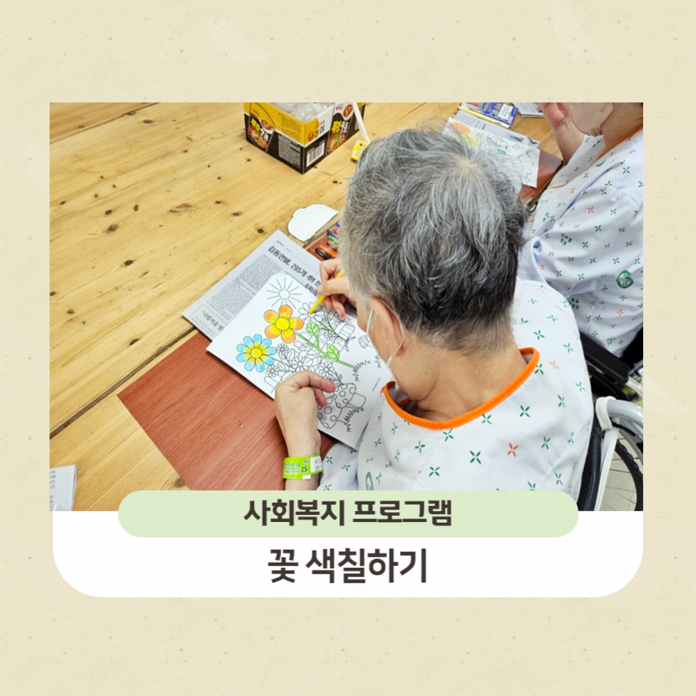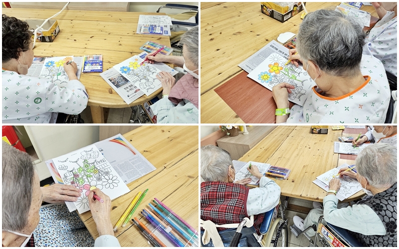 4월 셋째주에는 어르신들께서 좋아하시는 꽃 그림으로 색칠프로그램을 진행해보았습니다.