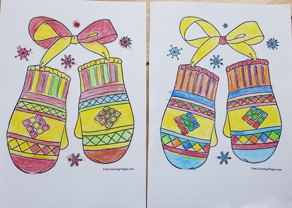계절에 맞는 따뜻한 분위기의 장갑으로 색칠해보았으며