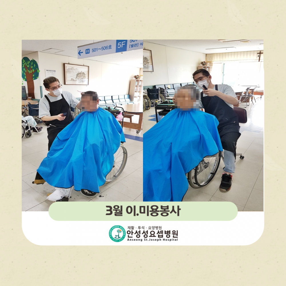 3월 9일 목요일에는 2,5병동 미용봉사가 진행되었습니다.