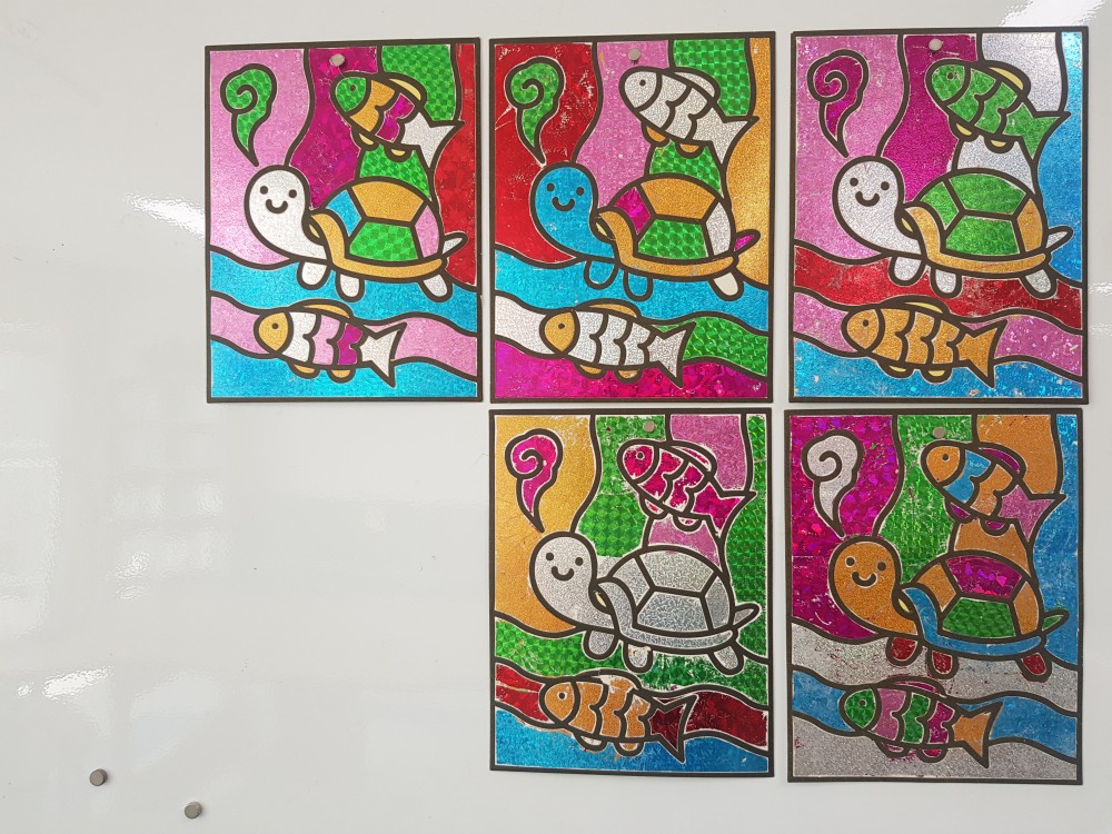 포일을 떼면 채색이 완료되는 간편한 방식에 어르신들이 신기해하시며 정성스럽게 작품을 완성하셨습니다.