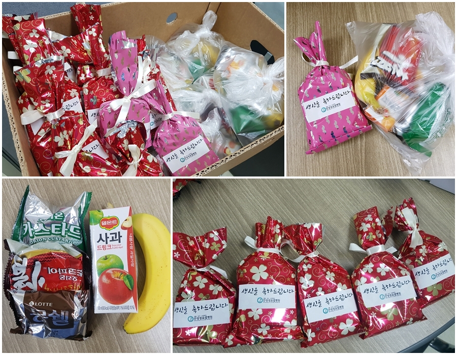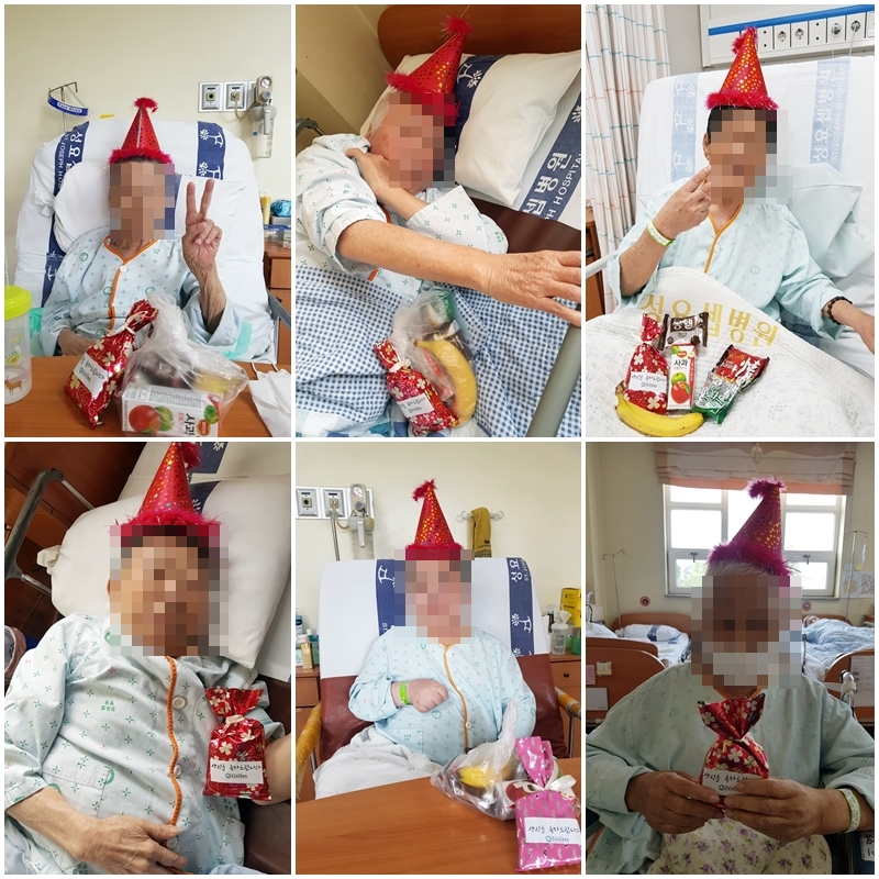 생신을 맞이하신 분들께 다과와 선물을 방으로 전달하였습니다.