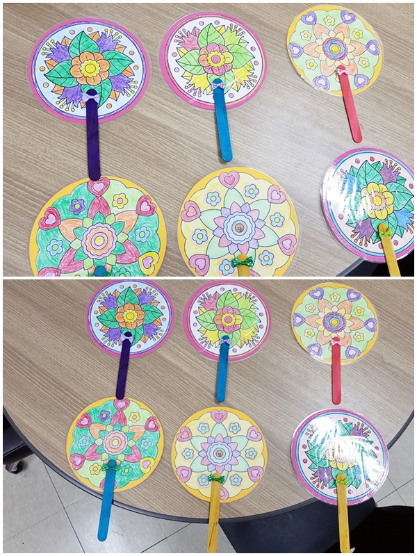 완성하신 색칠도안을 가지고 부채로 만들어 드렸습니다.