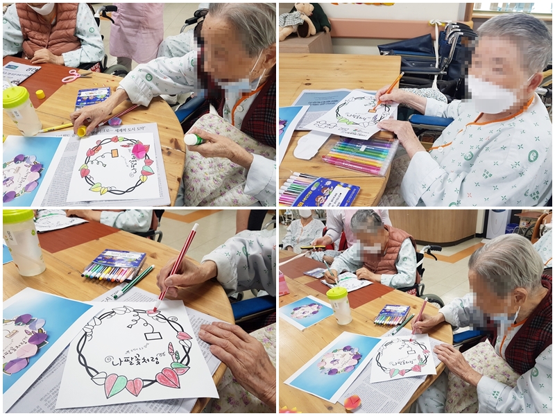 7월 6일에는 어르신들과 함께 나팔꽃리스를 만들어보았습니다.