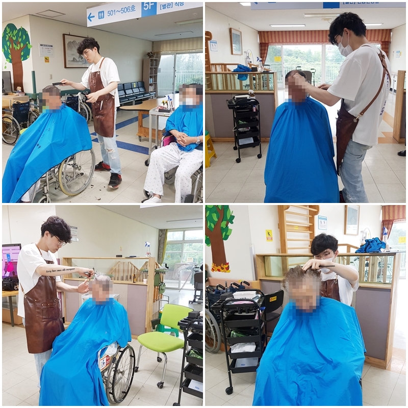 2,3,5층에 계시는 환자분들의 머리를 다듬어 드렸으며(총 19명 진행)