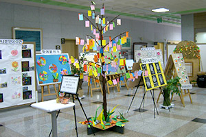 미술요법 시간에 어르신들이 직접 만든 작품을 전시하는 행사입니다.